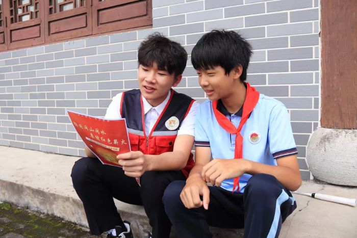 (圖為服務(wù)隊(duì)成員學(xué)習(xí)紅色歷史知識(shí))