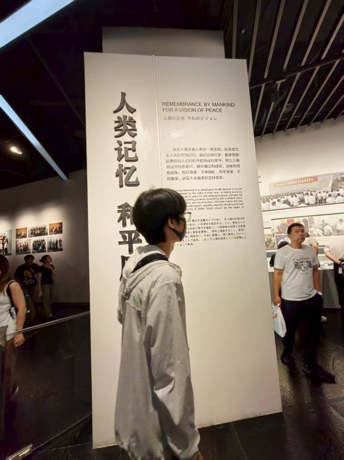 圖為團(tuán)隊(duì)成員在“遇難者300000”墻體前參觀場(chǎng)景 祁煒宏攝