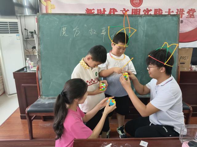 圖為實踐團成員帶領孩子們拼魔方并分享故事。臺可娜 供圖