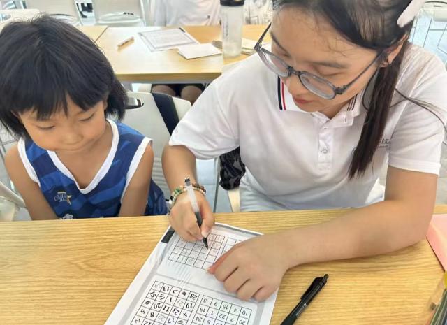圖為實踐團成員制作舒爾特方格間。楊揚 供圖