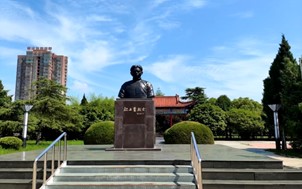 繼續(xù)前行,在陵園中間屹立著的是江上青烈士的雕像。雕像栩栩如生,江上青烈士身姿挺拔,目光堅定地望向遠(yuǎn)方,仿佛仍在為心中的理想和信念而堅守。他的神態(tài)中透露出無畏與堅毅,那是在戰(zhàn)火紛飛的年代里,為了國家和人民勇往直前、毫不退縮的決心。雕像的背后對江上青烈士的介紹也令人動容。江上青烈士出生于一九一一年,他英勇無畏,為了實(shí)現(xiàn)革命理想,不惜犧牲一切,為國家和人民的解放事業(yè)做出了不可磨滅的貢獻(xiàn)。一九三八年,年僅二十八歲的江上青烈士遭到地主反動武裝襲擊壯烈犧牲,他的生命雖然短暫,但他的精神永垂不朽。雕像的每一處線條都刻畫得細(xì)膩而生動,烈士的英勇形象被永恒地定格在這一瞬間,但革命先烈的偉大精神將被永遠(yuǎn)傳承。實(shí)踐小組成員們在雕像前整齊列隊,神情肅穆,全體成員默哀三分鐘,表達(dá)對江上青英烈的深切哀悼和無盡敬仰。