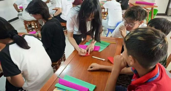 為貫徹生態(tài)教育相關(guān)政策,助力青少年生態(tài)知識(shí)普及,7月10日,實(shí)踐團(tuán)走進(jìn)惠民社區(qū),聯(lián)合社區(qū)負(fù)責(zé)人王雪潤開展了一場紅領(lǐng)巾小課堂活動(dòng),活動(dòng)以手工教學(xué)與知識(shí)問答融合的形式,為社區(qū)小朋友帶來獨(dú)特生態(tài)科普體驗(yàn)。手工折玫瑰的芬芳與生態(tài)問答的思辨交織,同王雪潤等社區(qū)負(fù)責(zé)人的協(xié)同助力,讓“尊重自然、愛護(hù)自然”的理念如春雨般浸潤童心,為邊疆的生態(tài)未來播下希望的種子。