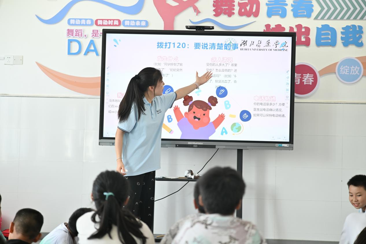 圖為老師正在強(qiáng)調(diào)撥打120時(shí)需要注意的五點(diǎn) 陳立志 農(nóng)姚 攝