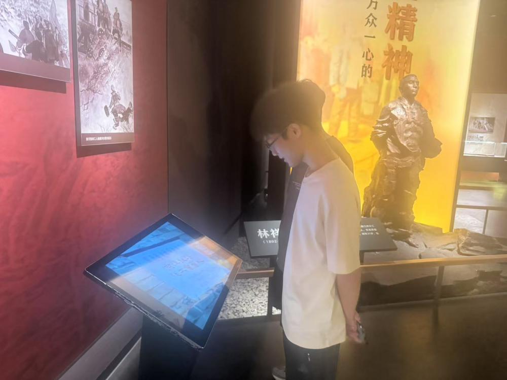 (圖為研學(xué)隊(duì)員利用館內(nèi)的現(xiàn)代化設(shè)備重溫歷史)