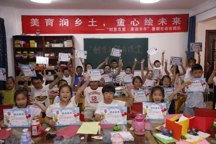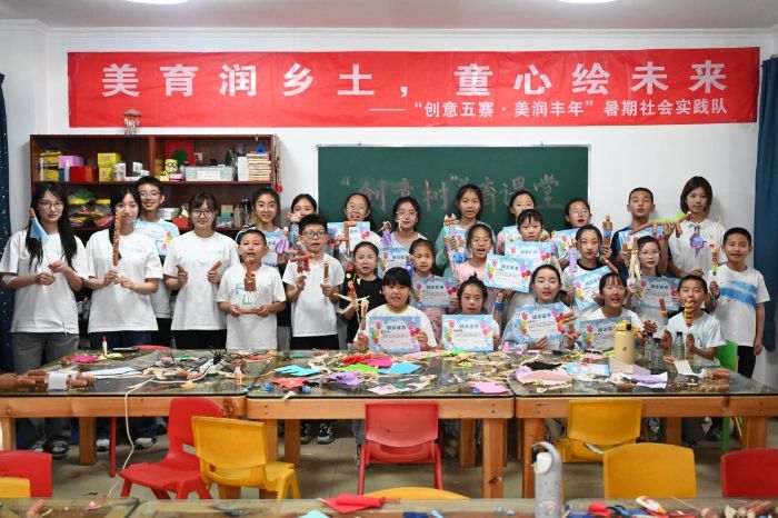 實(shí)踐深悟:美育深耕,沃土育新苗從浸潤(rùn)傳統(tǒng)的小學(xué)生課堂到啟迪創(chuàng)新的中學(xué)生課堂,第七日的實(shí)踐在美育的深耕中奏響文化傳承與永續(xù)發(fā)展的雙重樂(lè)章:布藝與面塑課堂讓傳統(tǒng)文化不再懸浮于書(shū)本,成為可創(chuàng)造、可擁抱的鮮活記憶,深植童心;而玉米環(huán)保再生課堂則啟迪永續(xù)思維,當(dāng)農(nóng)業(yè)廢料在學(xué)生手中化作創(chuàng)意原料,綠色發(fā)展的理念已在年輕一代心中生根發(fā)芽。結(jié)業(yè)證書(shū)頒發(fā)時(shí)的燦爛笑容,一件件凝聚童真與創(chuàng)想的作品,共同勾勒出五寨文化傳承與未來(lái)發(fā)展的生動(dòng)圖景——高校創(chuàng)意如清泉沃灌鄉(xiāng)土,喚醒的不僅是今日的文化嫩芽,更是生生不息的希望之林。美育潤(rùn)物無(wú)聲,創(chuàng)想啟迪未來(lái),青春執(zhí)筆,正于這片熱土?xí)鴮?xiě)文化永續(xù)的新篇章。