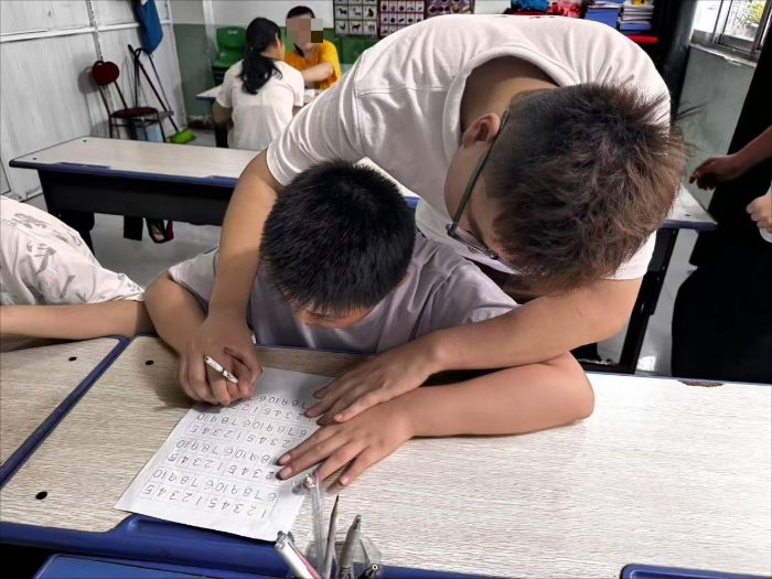??????? 圖為南工學子陪伴學生寫作業(yè)。王李昭 供圖