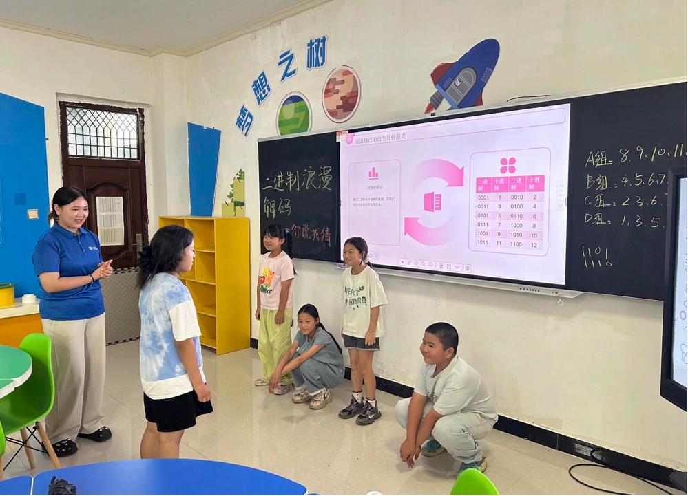 團隊結合專業(yè)特色,設計了“二進制浪漫解碼”“AI夢想家”等趣味課程,帶領30余名鄉(xiāng)村孩子探索編程與AI的奇妙世界。孩子們化身“小程序員”,成功完成Scratch游戲任務,在歡聲笑語中點燃了科技夢想同時,團隊成員還為學生們展示了“水中煙花”“泡泡龍”“彩虹雨”“水果電池”等近15個富有趣味性的科學小實驗和科學理論宣講課程,并且聯(lián)系實際,用淺顯易懂的方式幫助學生們了解和掌握實驗背后蘊含的力學、AI等科學知識。不僅如此,活動還融入思政教育,通過愛國主義課堂和“人工智能時代”主題課程,厚植學生們的家國情懷。