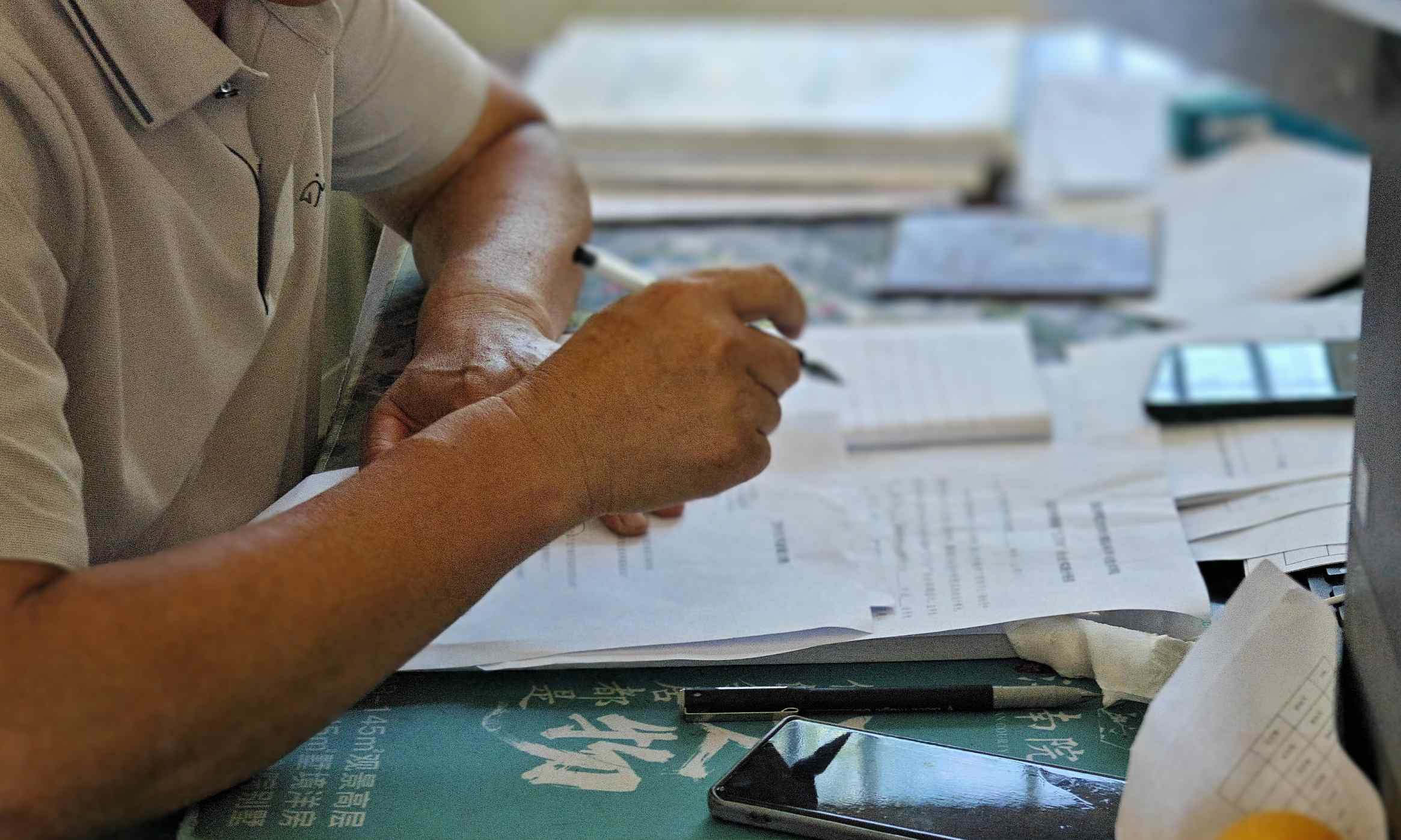 村支書寫基本信息。 實踐隊員 謝雨欣 供圖