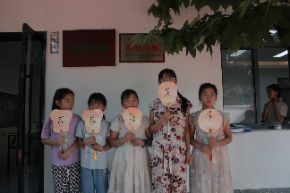 實踐隊員通過 “講解 + 示范 + 實操” 模式開展教學:在漆扇課上示范基礎筆法與色彩搭配,指導孩子們完成個性化創(chuàng)作;借助分解圖講解紙質(zhì)模型組裝邏輯,幫助掌握空間構建技巧;從折紙基礎教起傳授剪紙紋樣技法,讓傳統(tǒng)工藝在指尖傳承。課堂互動中,孩子們專注投入的神情與作品完成后的雀躍反響,成為山區(qū)校園里的暖心風景。?