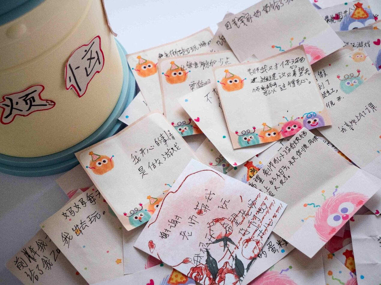 圖為小朋友們寫下對老師的祝福語 陳立志 農(nóng)姚 攝