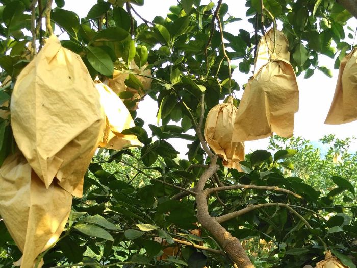 7.24日“農品新生“調研團隊調研首站步入廣西農科院沙田柚智慧種植示范基地,團隊成員親身體驗農業(yè)科技的魅力,連片的沙田柚樹套著黃色的袋子讓隊員們充滿好奇,隨著種植基地負責人的腳步,調研隊來到了沙田柚樹下,隊長黃詩怡向負責人問道:“為何沙田柚都用黃色的袋子包裹???這樣做有什么作用嗎?”種植基地負責人耐心詳細地回答套上黃色的袋子主要有四個用處,第一可以減少農藥污染,能有效阻隔農藥與果實直接接觸,降低果實表面的農藥殘留。第二改善外觀品質可以避免外界物質對果實的表面機械損傷,減少病蟲害叮咬。第三提高果品質量,可以減少果實受外界不良氣候的影響,降低裂果率,還能適當調節(jié)袋內溫度和濕度,利于果實糖分積累提高品質。第四可以降低成本,比如減少因病蟲害,機械損壞等導致的落果,提高果實的完好率和產量,從而在一定程度上降低了生產過程中的損失,間接降低了生產成本。