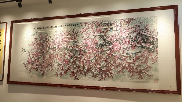 在展區(qū)的二樓,成員們有幸目睹了書畫家張培基的作品。張培基的家鄉(xiāng)正是周巷鎮(zhèn)萬安莊村。