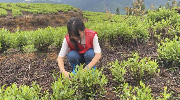 田間勞動(dòng),體驗(yàn)茶農(nóng)艱辛 7月21日清晨,隊(duì)員們跟隨茶農(nóng)黎師傅走進(jìn)茶園,學(xué)習(xí)除草、松土、施肥等技術(shù)。“淺耕保墑要掌握2-3厘米深度,太深傷根,太淺沒效果。”隊(duì)員們學(xué)著他的樣子,彎腰在茶樹間穿梭。汗水很快浸透了后背,指尖沾滿泥土的芬芳。不知何時(shí),幾位苗族阿姐也加入了勞作的隊(duì)伍。休息時(shí),她們唱起悠揚(yáng)的苗歌,歌聲像山澗清泉般流淌。雖然聽不懂歌詞,但隊(duì)員們不約而同地跟著節(jié)奏輕輕搖擺。陽光下,不同民族的笑臉一樣燦爛,歌聲在山谷間回蕩,驚起一群飛鳥。這一刻,語言不再是隔閡,茶香與歌聲成了最動(dòng)人的紐帶。