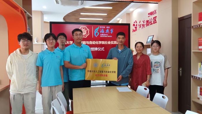 最后,河海大學人工智能與自動化學院與海英草志愿者中心正式簽署合作協(xié)議,并舉行授牌儀式。紅綢揭下的瞬間,全場響起持久掌聲。實踐團成員與志愿者中心工作人員合影留念,鏡頭定格了笑容與期待。