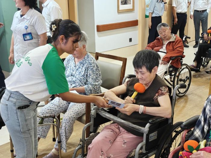 緊接著,留學(xué)生成員們帶領(lǐng)老人們做起了簡單易學(xué)的手指操。伸展、彎曲、對指……這些基礎(chǔ)動作在老人們的認(rèn)真練習(xí)下顯得格外投入。學(xué)子們在一旁悉心示范指導(dǎo),活動現(xiàn)場歡聲笑語不斷,掌心相觸間傳遞著跨越國界的融融暖意。