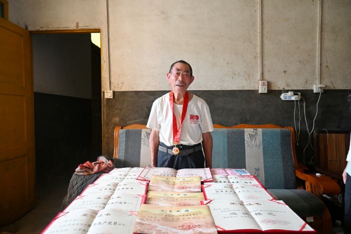 圖為李子興同志佩戴榮譽(yù)勛章 劉陽攝