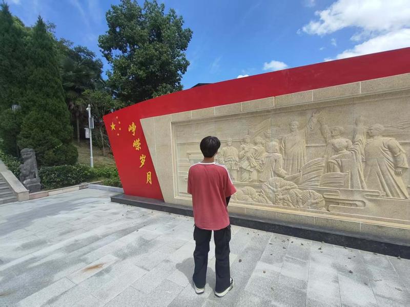 此圖為烈士陵園浮雕,賈先爽供圖。 園內(nèi)的革命先輩雕像,定格著先驅(qū)們的偉岸身姿。實(shí)踐團(tuán)成員圍站雕像旁,聽(tīng)著先輩們?yōu)楦锩聵I(yè)披荊斬棘、為人民幸福鞠躬盡瘁的故事,先輩們的信仰之光,照亮了成員們理解 “初心使命” 的青春之路,更堅(jiān)定了大家傳承紅色基因、續(xù)寫時(shí)代榮光的決心。