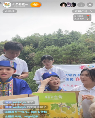 親自參與了果子的觀察與采摘后,實(shí)踐隊(duì)進(jìn)行了“直播帶貨”初體驗(yàn),以鏡頭為筆、話語(yǔ)為墨,向網(wǎng)友介紹皇帝柑的脆嫩、百香果的香甜,在直播間里傳遞東水果園的“甜蜜故事”,探索“互聯(lián)網(wǎng)+農(nóng)業(yè)”的銷(xiāo)售新模式,為東水鎮(zhèn)特色水果拓寬銷(xiāo)路提供了青春思路。