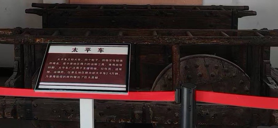 在總前委舊址展廳內(nèi),劉錦怡手持相機(jī),仔細(xì)調(diào)整拍攝參數(shù),為每一件件革命文物拍攝高清影像。她首先將鏡頭對準(zhǔn)支前文物。“這輛獨(dú)輪車的車轅上有明顯的磨損,”舊址講解人員王女士指著木質(zhì)部件向參觀者介紹,“這些痕跡見證了當(dāng)年群眾支援前線和軍民團(tuán)結(jié)的歷史。”旁邊的太平車鐵制輪軸銹跡斑駁的細(xì)節(jié)也被她的鏡頭仔細(xì)記錄著。