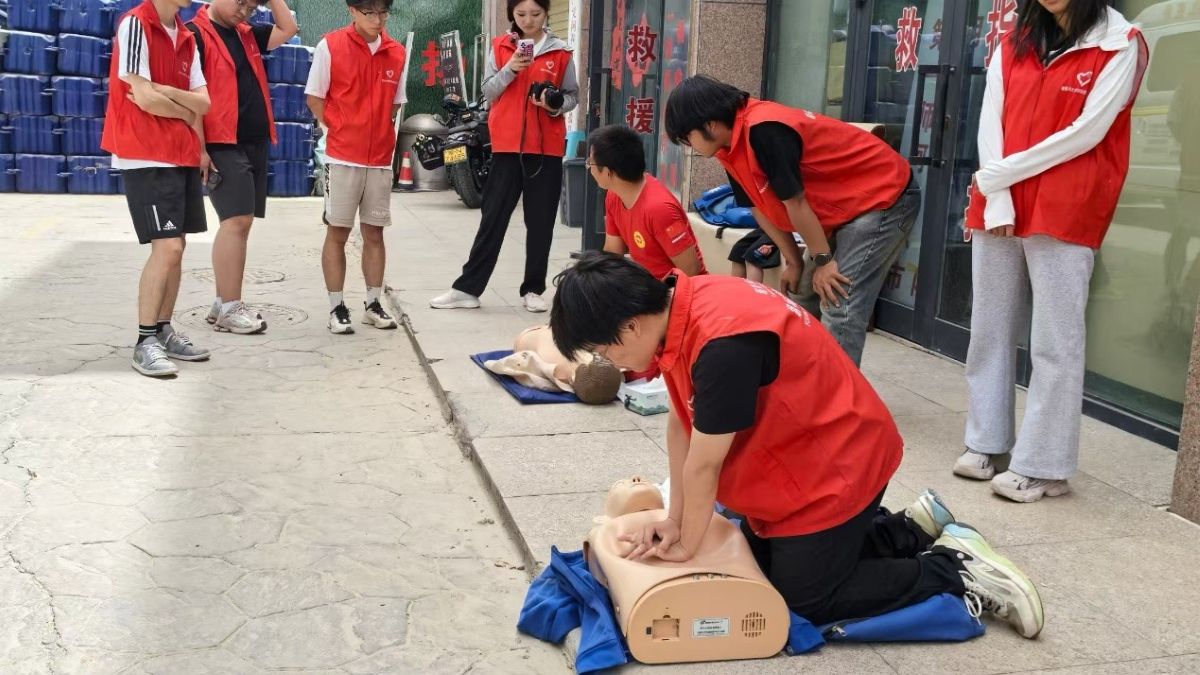 圖為實踐隊員進行心肺復(fù)蘇實操練習(xí) 吳夢琦 攝