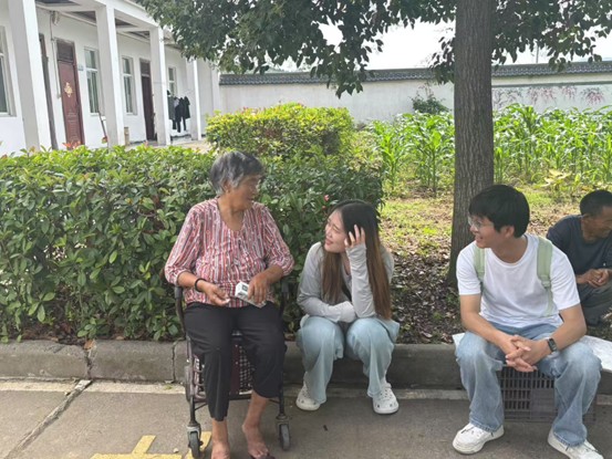 分發(fā)完水果后,志愿者們分散在院子各處,與老人們圍坐在一起嘮起了家常。從年輕時的工作經歷到如今的生活起居,從家鄉(xiāng)的變化到院里的日常,老人們打開了話匣子。76 歲的張爺爺興致勃勃地講述著自己種莊稼的往事,志愿者們認真傾聽,時不時點頭回應,偶爾提出問題,讓老人講得更起勁。“平時難得有人聽我說這么多,今天和孩子們聊天,心里敞亮多了。” 張爺爺說。