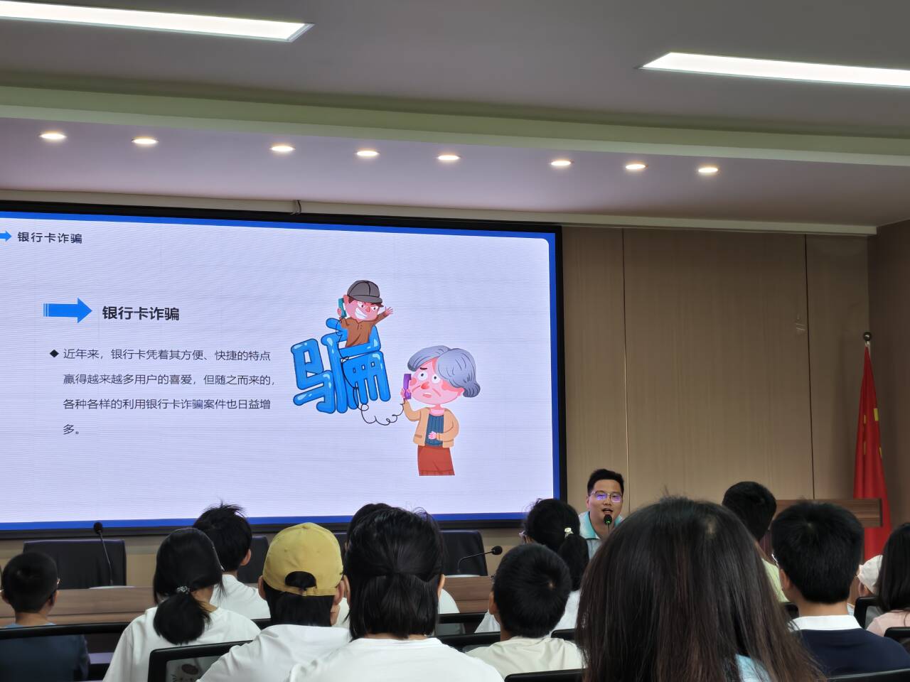 活動現(xiàn)場,陳鵬杰老師以通俗易懂的語言,向孩子們介紹了常見的金融詐騙手段,如虛假中獎、冒充客服、游戲充值詐騙等。通過模擬場景和互動問答,老師引導孩子們思考“面對陌生人索要密碼該怎么辦”“收到可疑鏈接能否點擊”等問題,讓大家在輕松的氛圍中掌握了“不輕信、不透露、不轉賬”的防騙原則。陳鵬杰老師表示,青少年群體對金融知識的了解相對有限,提前普及防詐騙知識,能幫助他們建立安全防線,避免遭受財產(chǎn)損失。