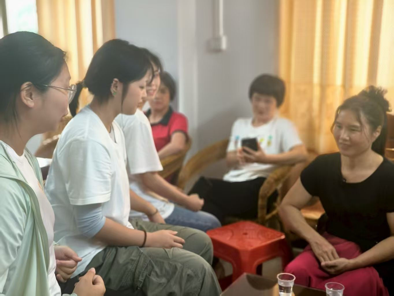 圖為楊紫開(kāi)、陳韻竹、駱小惠與阿姨交流 陳奕敏攝