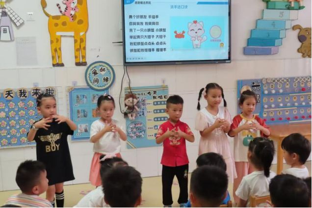 隨后,志愿者們便帶領(lǐng)孩子們一步步實踐起來,孩子們跟著口訣伸出手,認真揉搓掌心;交叉清洗起手背的指縫。在最后的課堂回顧中,孩子們積極舉手回答,整個過程充滿了歡樂與收獲。