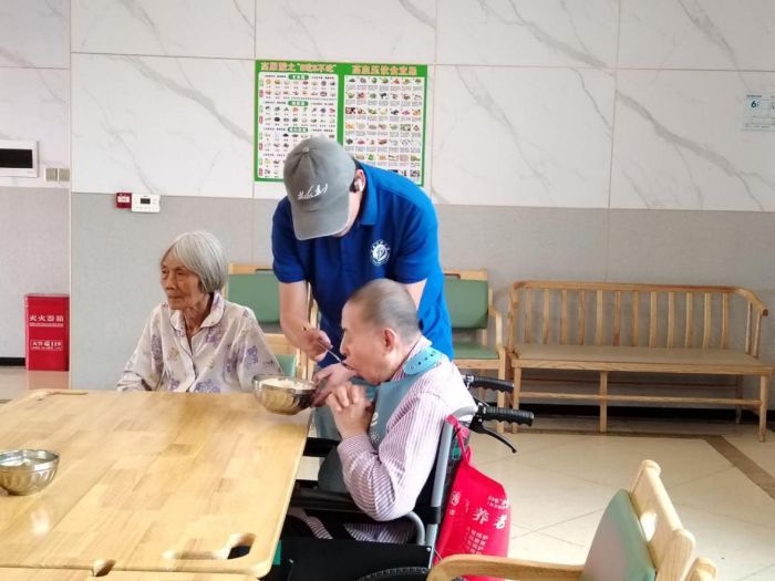 在用餐時(shí)段,志愿者們主動(dòng)前往餐廳協(xié)助工作人員,參與餐前準(zhǔn)備、餐食有序分發(fā)以及餐后清潔整理等環(huán)節(jié),有效分擔(dān)了養(yǎng)老院護(hù)工的壓力,保障了老人們用餐的便捷與舒心。