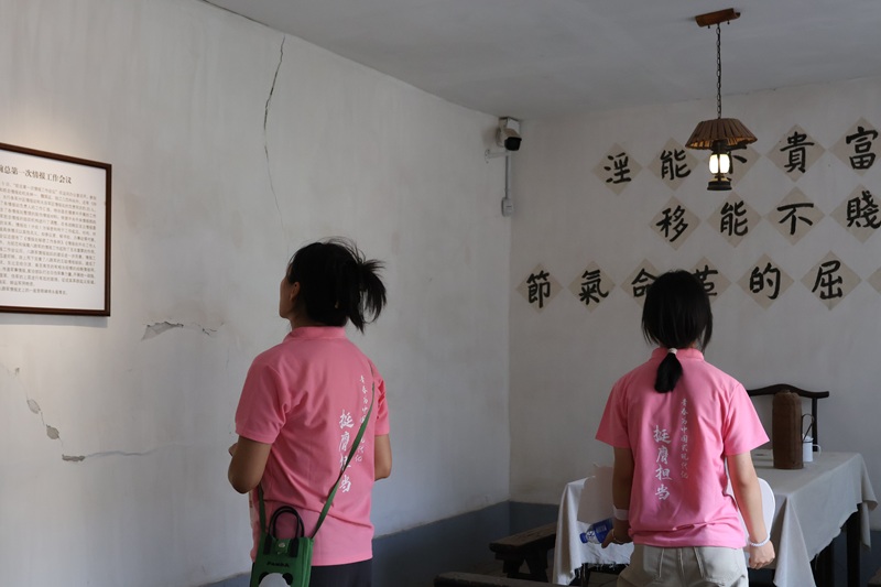 實(shí)踐團(tuán)首站抵達(dá)八路軍總部機(jī)關(guān)舊址。泛黃的歷史文物與珍貴圖片靜靜陳列,無聲訴說著烽火歲月的崢嶸往事。成員們駐足凝視,仿佛穿越回民族危亡的年代,深切體會到八路軍將士為民族獨(dú)立和人民解放付出的巨大犧牲。“每一件物品都透著革命先輩的堅(jiān)韌執(zhí)著,這種艱苦奮斗的精神正是當(dāng)代青年最該傳承的財富。” 石亞彤被舊址內(nèi)簡樸的陳設(shè)深深打動。