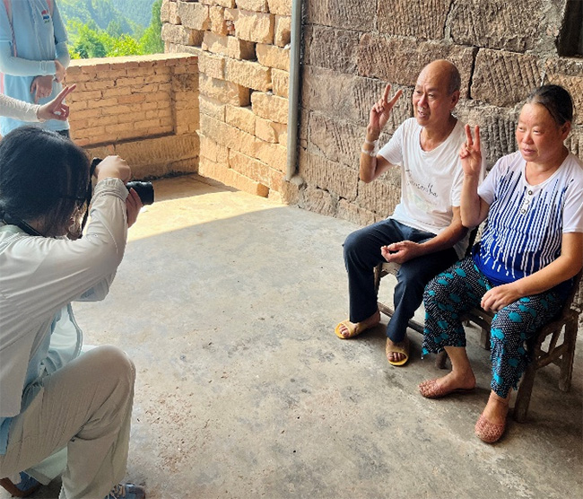 圖為團隊成員為付爺爺夫婦拍生活照畫面。“萬”“項”更新齊振興實踐團 供圖