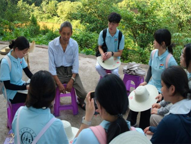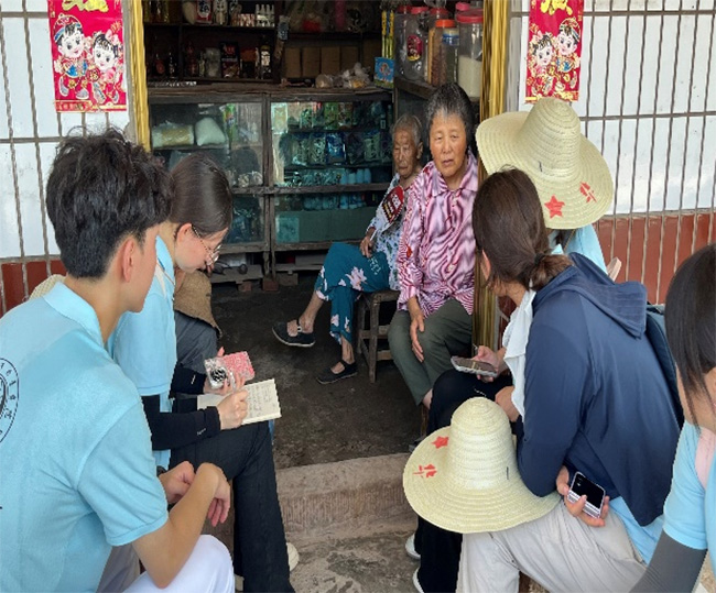圖為實踐團成員與村民駱爺爺進行交流。“萬”“項”更新齊振興實踐團 供圖