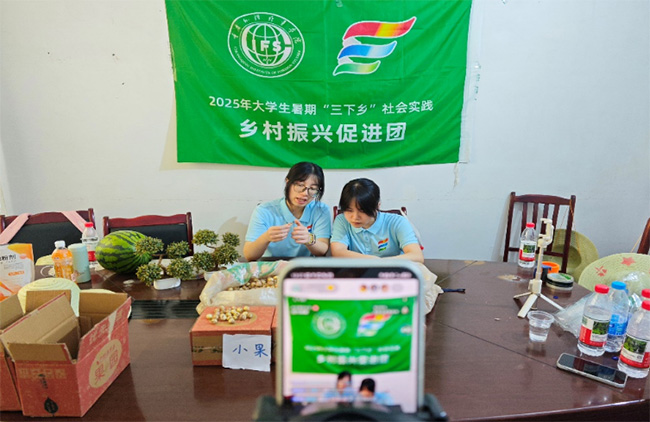 圖為實踐團成員開展助農(nóng)直播。“萬”“項”更新齊振興實踐團 供圖