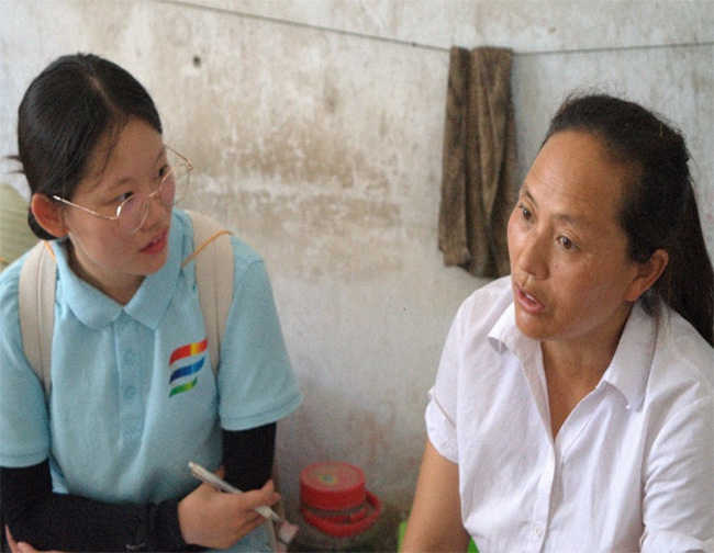 圖為團隊成員采訪村民付奶奶。“萬”“項”更新齊振興實踐團 供圖