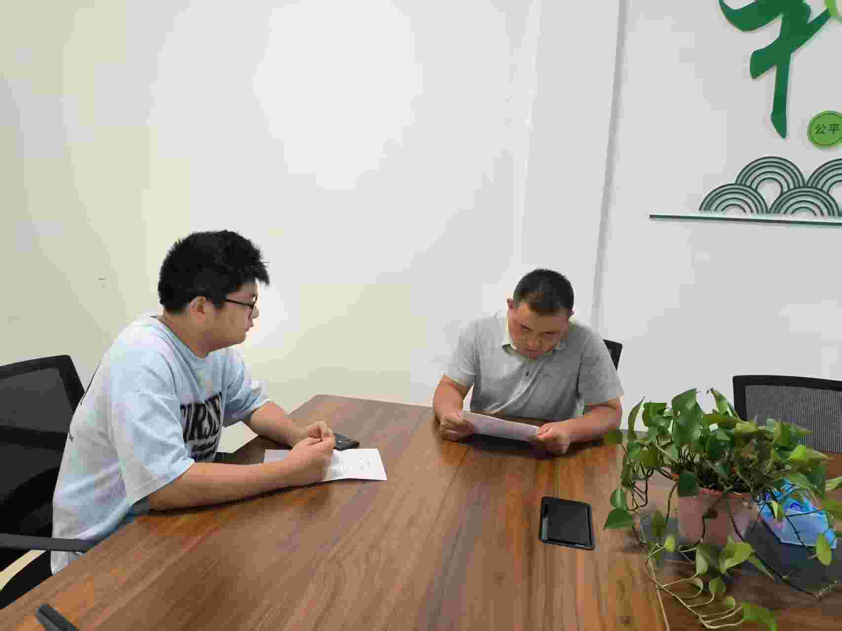圖為志愿者采訪村支書(shū)