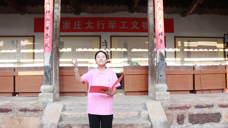 “當(dāng)?shù)谝豢|陽光照進(jìn)窯洞車間,錘頭與鋼砧的交響便喚醒了沉睡的山谷。”實(shí)踐團(tuán)成員趙怡軒的深情朗誦,如一把鑰匙,輕輕打開了楊家莊那段塵封的軍工往事,為這段紅色歷史注入了鮮活溫度。她用飽含激情的語言,將團(tuán)隊(duì)成員帶回那個(gè)靠信仰照亮黑夜的年代:軍工戰(zhàn)士們?cè)谟蜔粝吕L制圖紙,在寒風(fēng)中鍛造零件,用汗水與智慧凝結(jié)成保家衛(wèi)國(guó)的利器。這場(chǎng)沉浸式朗誦讓紅色記憶愈發(fā)具象,更在在場(chǎng)每個(gè)人心中播下了傳承的種子。
