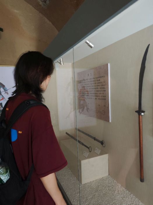 隨后,實踐隊走進(jìn)古兵器博物館,館內(nèi)陳列的刀、槍、劍、戟等兵器,無聲訴說著晉商“商路即險路”的創(chuàng)業(yè)歷程。據(jù)館長介紹,明清時期晉商開辟萬里茶路,穿梭于戈壁荒漠與深山險灘,常需自備兵器護(hù)衛(wèi)商隊,這些兵器不僅是防身工具,更見證了晉商“敢闖敢拼、勇?lián)L(fēng)險”的開拓精神。團(tuán)隊成員在銹跡斑斑的兵器前駐足,深刻體會到晉商在艱難環(huán)境中開辟商業(yè)版圖的堅韌與智慧。