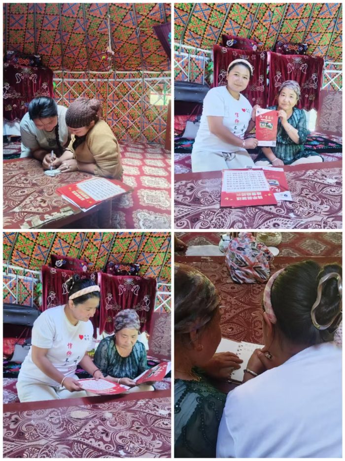 針對山區(qū)婦女,團隊成員們不畏路途艱辛,跋山涉水走訪家家戶戶,開展一對一針對性教學??紤]到她們的日常需求,教學從最基礎的內容入手,比如常用生活詞匯的發(fā)音和簡單句子的表達。成員們耐心地逐字逐句教讀,反復糾正發(fā)音。而“教會大家寫自己的名字”是其中極具意義的一件實事,很多婦女之前從未寫過自己的名字,成員們握著她們的手一筆一劃地教,直到她們能獨立寫出。這個過程不僅讓她們掌握了一項基本技能,更增強了她們學習普通話的信心。