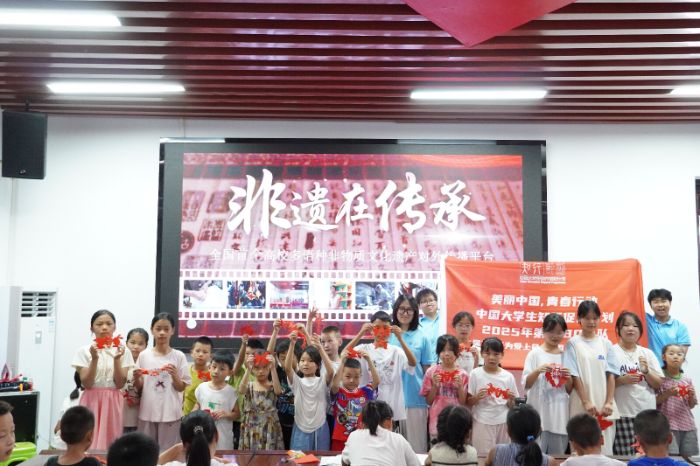邂逅“古今中外”,點(diǎn)亮知識(shí)火花為了讓孩子們擁有一個(gè)豐富多彩的暑假,支教團(tuán)的成員們精心設(shè)計(jì)的各式各樣的課程,“古今中外”樣樣齊全,既有語文、英語、地理、歷史和體育等趣味學(xué)科課程,也有剪紙、扎染、書法和圍棋等傳統(tǒng)文化和非遺手工體驗(yàn)課程,音樂、繪畫、詩歌等課程則為孩子們提供了發(fā)揮想象和創(chuàng)意的平臺(tái)。此外,科學(xué)實(shí)驗(yàn)和AI通識(shí)課與環(huán)保巧妙結(jié)合,更是在孩子們的心中種下了科技和環(huán)保的種子。陶如霜小朋友說道:“我最喜歡阿佳老師的繪畫課,她教會(huì)我如何觀察生活。”張正文小朋友則對(duì)文卓老師開設(shè)的趣味英語課情有獨(dú)鐘,他認(rèn)為文卓老師授課幽默風(fēng)趣,讓他對(duì)以往覺得無聊的英語產(chǎn)生了濃厚的興趣。