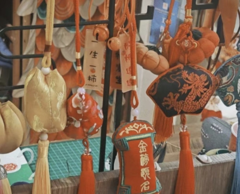 店內(nèi),各式香包琳瑯滿目,傳統(tǒng)樣式與創(chuàng)新設(shè)計(jì)交織。虎頭帽等特色物件,承載著地域文化記憶;編制的錦鯉、繡球等物品,將傳統(tǒng)技藝與審美巧融合。墻上陳列的諸多獎(jiǎng)項(xiàng),不僅是對楊師傅技藝的肯定,更彰顯香包文化傳承的生命力,讓隊(duì)員們直觀看到香包非遺在當(dāng)代的存續(xù)狀態(tài) 。