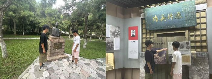 在陵園雕像前,實(shí)踐團(tuán)偶遇一位初中生。隊(duì)員們主動(dòng)為他講述了冀東抗日暴動(dòng)中軍民抗?fàn)幍墓适拢貏e是那個(gè)與他年紀(jì)相仿的小戰(zhàn)士,為掩護(hù)鄉(xiāng)親轉(zhuǎn)移毅然引開敵人的事跡。這場(chǎng)偶然的相遇,讓紅色故事在悄然間傳遞,也讓我們感受到傳承的力量。