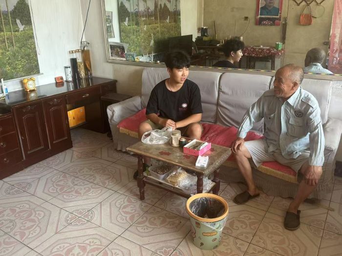 隨后,實(shí)踐團(tuán)拜訪了82歲的老黨員張爺爺。老人緩緩講述起家族往事:他的爺爺曾是一名抗日軍人,在戰(zhàn)爭(zhēng)中不幸犧牲,用生命踐行了保家衛(wèi)國(guó)的信念。張爺爺回憶著祖輩的抗?fàn)幑适?,也談及自己?duì)當(dāng)代共產(chǎn)黨精神與抗日精神的理解。這場(chǎng)跨越代際的交流,讓實(shí)踐團(tuán)成員真切觸摸到紅色精神的傳承脈絡(luò),更深刻明白如今的安穩(wěn)生活,正是無數(shù)這樣的家庭用犧牲與奉獻(xiàn)換來的珍貴饋贈(zèng)。
