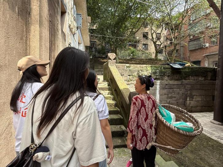 在理論學習的基礎(chǔ)上,團隊成員來到巴南區(qū)二圣鎮(zhèn)與當?shù)卮迕駠鴷痴?。面對調(diào)研對象多為老年人,存在聽力下降與方言隔閡的雙重挑戰(zhàn),團隊邀請當?shù)赝瑢W擔任“翻譯官”,并用生動語言搭配肢體手勢耐心解釋,讓詢問變得溫暖順暢。巴南區(qū)率先形成的落戶農(nóng)民農(nóng)村權(quán)益自愿有償退出“1+3+1”政策體系,使得昔日零散的土地在社會資本的助力下新生,有效激活了鄉(xiāng)村產(chǎn)業(yè)活力。一位隊員感慨道:“退出后的土地用來發(fā)展民宿、鄉(xiāng)村旅游,又讓這里煥發(fā)出了別樣的生機。”