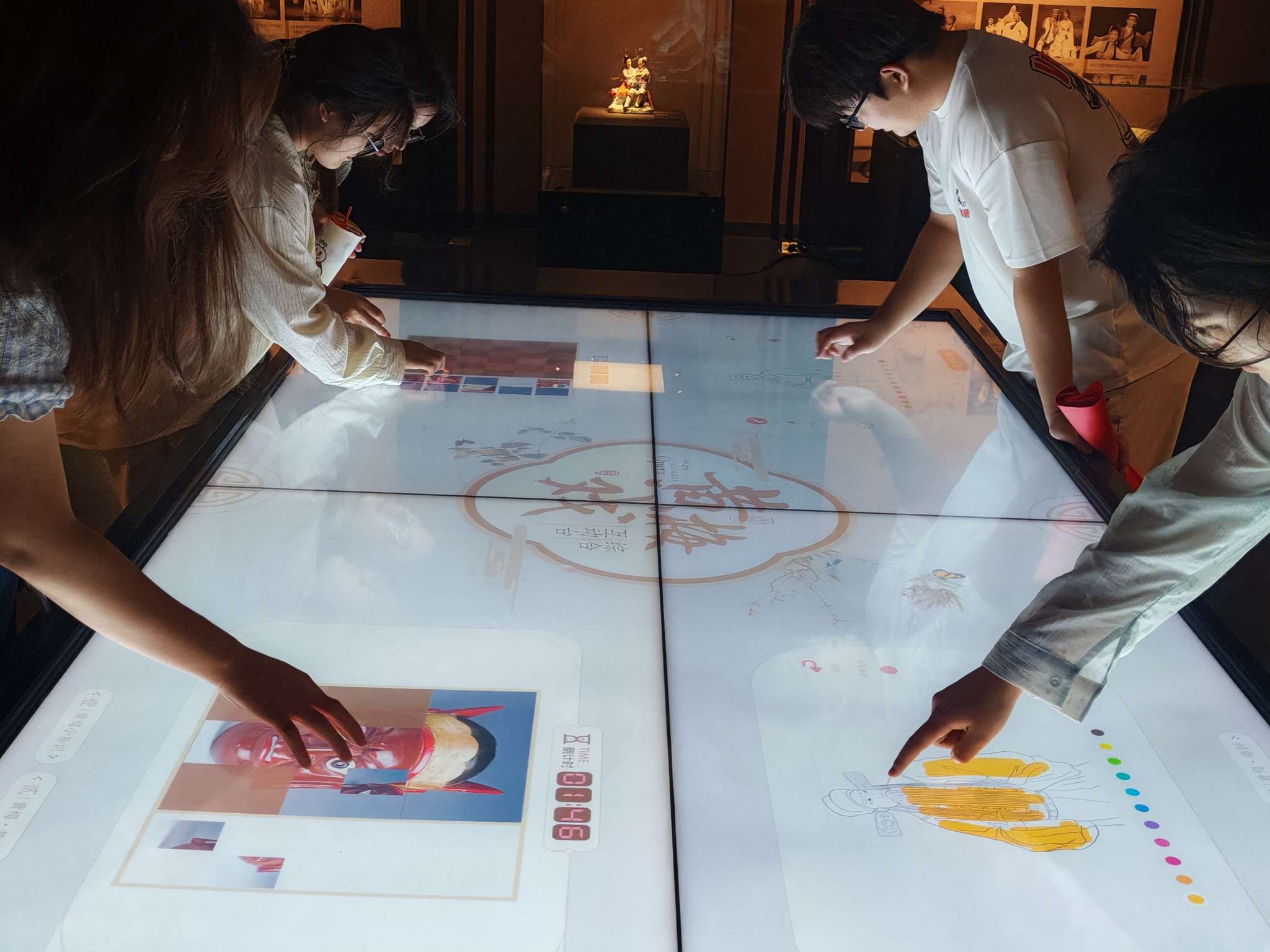 安慶博物館內(nèi)的互動(dòng)觸控屏以黃梅戲文化為核心,集展示、互動(dòng)、創(chuàng)作于一體。屏幕上,黃梅戲經(jīng)典角色、服飾、臉譜等內(nèi)容有序呈現(xiàn),同學(xué)們可通過(guò)觸摸操作,深入了解黃梅戲的藝術(shù)元素——既能瀏覽不同劇目的劇照與背景故事,還能嘗試為戲曲人物線上“扮戲”,自由搭配服飾色彩、頭飾造型,親手設(shè)計(jì)屬于自己的黃梅戲角色形象 。