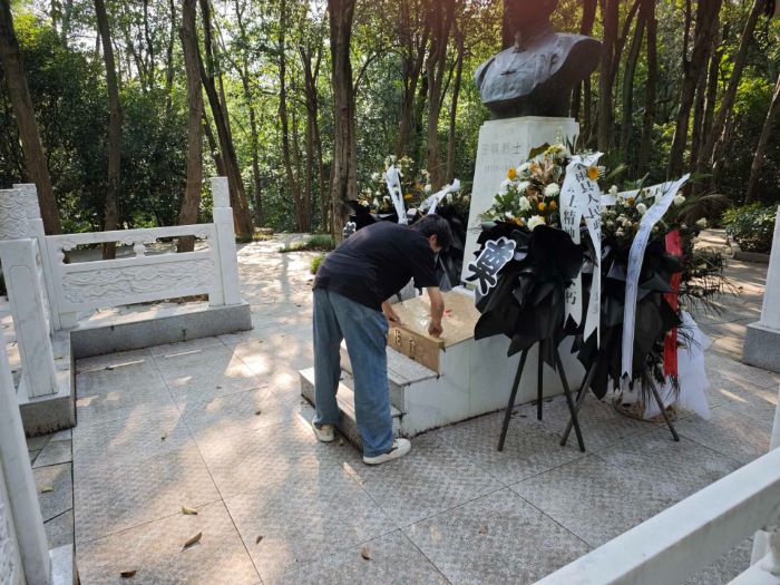 圖為隊員在王楓烈士陵園掃墓。周家樂 供圖