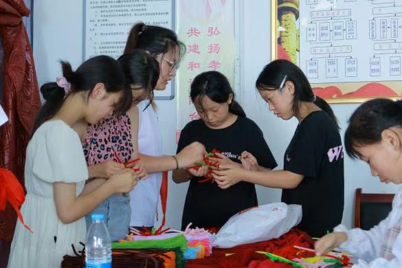 陳臺(tái)村的村委會(huì),一間不足60平米的屋子,成了實(shí)踐隊(duì)臨時(shí)的教學(xué)天地。在這里,5歲的孩童與17歲的高中生濟(jì)濟(jì)一堂,12個(gè)年級(jí)的認(rèn)知差異與“一室多用”的簡(jiǎn)陋條件,起初讓教學(xué)如同“一鍋燴”般難尋頭緒。但隊(duì)員們沒(méi)有退縮,立即調(diào)整課程,在方寸空間里開(kāi)辟出多元天地。從手工課、體育課、文化課再到課業(yè)輔導(dǎo),盛夏的蟬鳴聲中藏著鄉(xiāng)村少年最純粹的歡暢,知識(shí)也鉆進(jìn)孩子們的心里。此外實(shí)踐隊(duì)還與洛南縣圖書館取得聯(lián)系,聯(lián)合舉辦了“書香伴童行·支教獻(xiàn)真情”圖書分享活動(dòng),讓孩子們?cè)跁?yè)間觸摸更廣闊的世界。