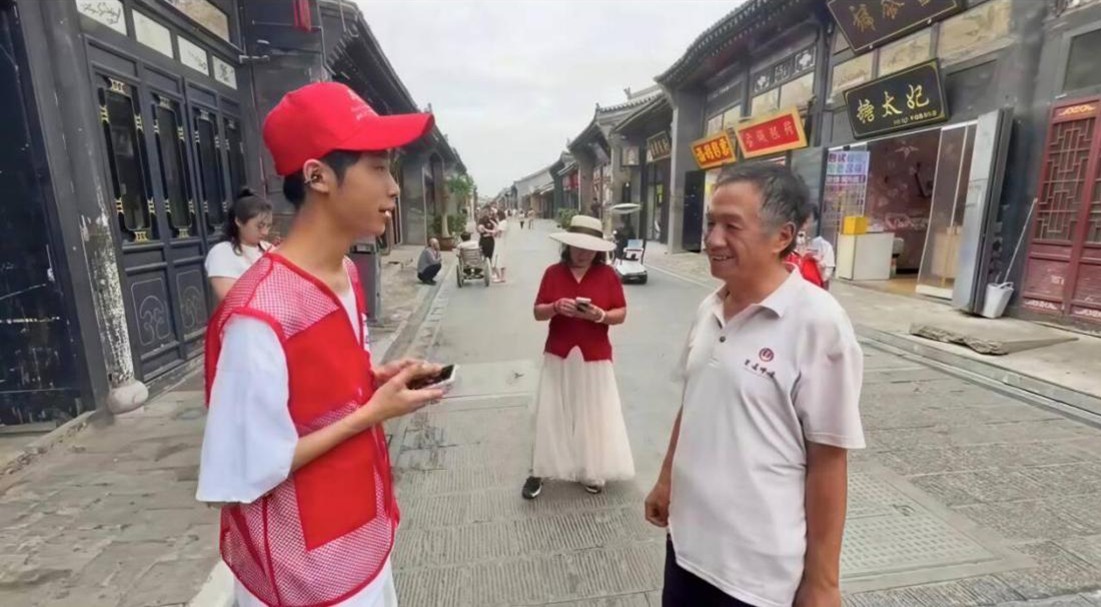 圖6老居民講古城發(fā)展 喬俊浩攝在裴老師的帶領(lǐng)下,團(tuán)隊(duì)走進(jìn)以“五堡一街”格局聞名的平遙岳壁鄉(xiāng)梁村。“這樣的設(shè)計(jì)既符合禮制規(guī)范,又能緩沖雨水對(duì)地基的沖擊,是古人智慧的結(jié)晶。”