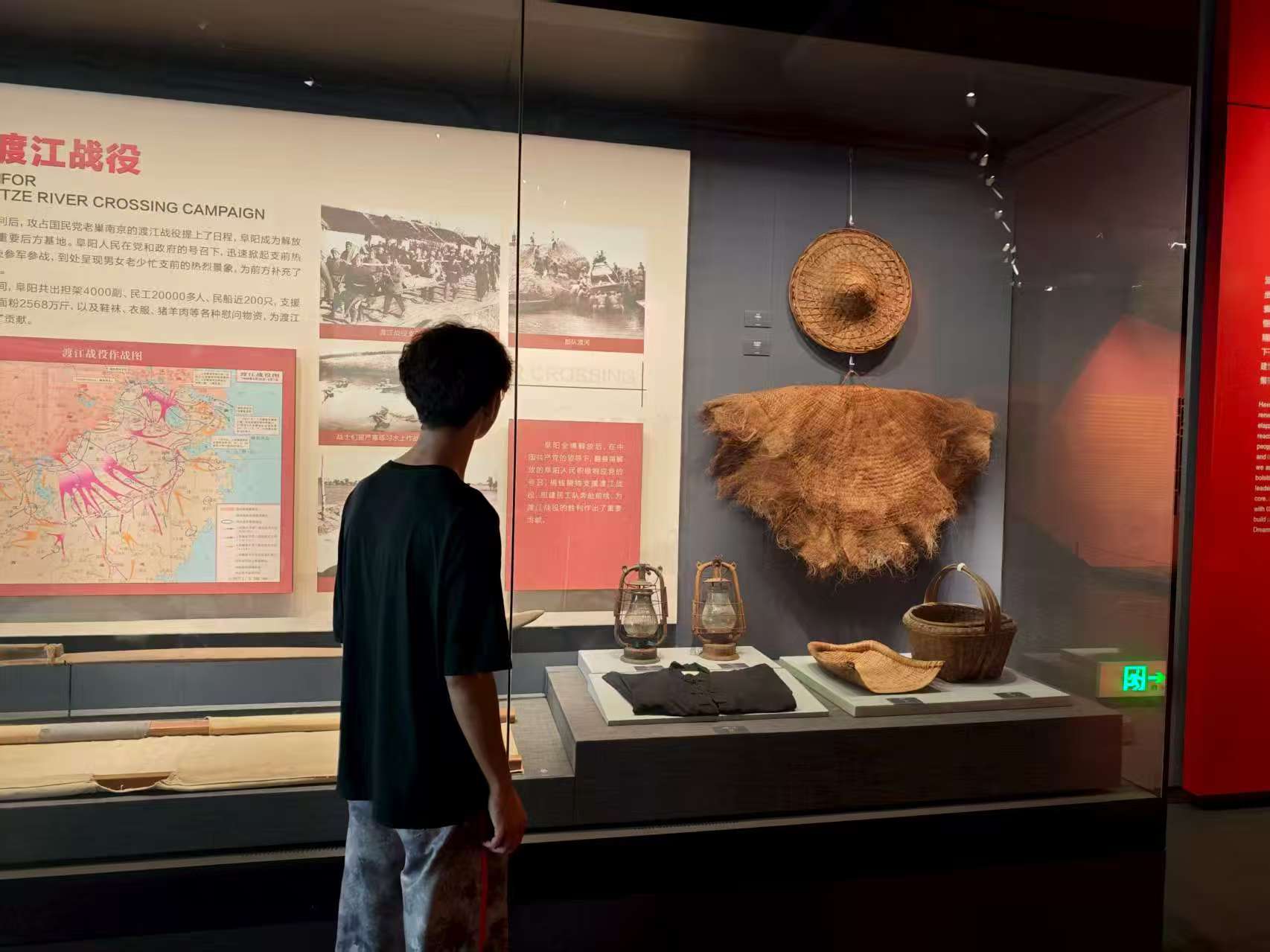 在阜陽博物館內,一場紅色教育課正在進行。小朋友們穿著統(tǒng)一的藍色校服,戴著鮮艷的紅領巾,在老師的帶領下井然有序的參觀著。老師通過講述革命故事,參觀紅色影片、展區(qū)等方式,向孩子們傳授紅色知識,讓他們從小了解革命歷史,傳承紅色基因。尋訪團和其他游客也不約而同地跟在他們身后與他們一起感受著紅色精神。“革命前輩面對敵人的鍘刀毫不畏懼,這種勇敢和堅定的精神值得我們學習。”一位小學生在聽完講解后說道。在場的人紛紛稱道,紅色基因在此刻傳承。