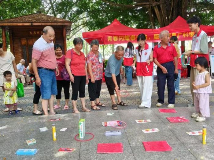 “套圈圈”游戲區(qū)域人氣爆棚,充滿歡聲笑語。居民們排起長隊,摩拳擦掌,躍躍欲試,套圈的獎品豐富多樣。大家在游戲中放松身心,享受著游戲帶來的樂趣,現(xiàn)場氛圍熱烈歡快。