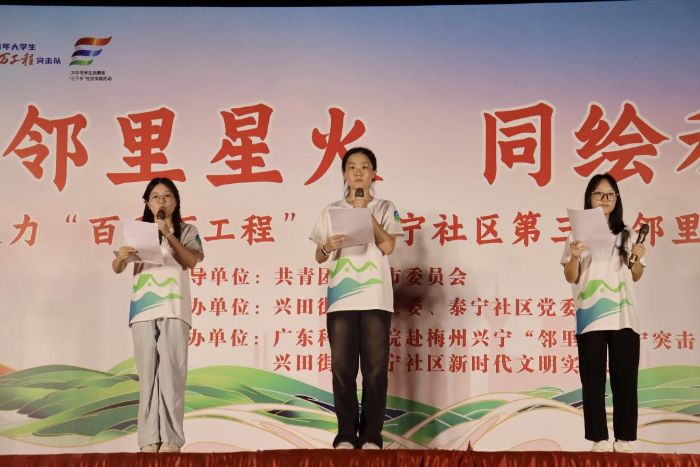 近日,明星公園華燈初上,泰寧社區(qū)第三屆鄰里節(jié)文藝匯演在夏夜微風中溫情上演。公園內(nèi)掌聲陣陣,泰寧社區(qū)第三屆鄰里節(jié)文藝匯演在歡聲笑語中拉開帷幕。廣東科技學院赴梅州興寧“鄰里”泰寧突擊隊充分發(fā)揮大學生文藝特長,為社區(qū)居民帶來了一場有深度、有溫度、有力度的文藝盛宴。